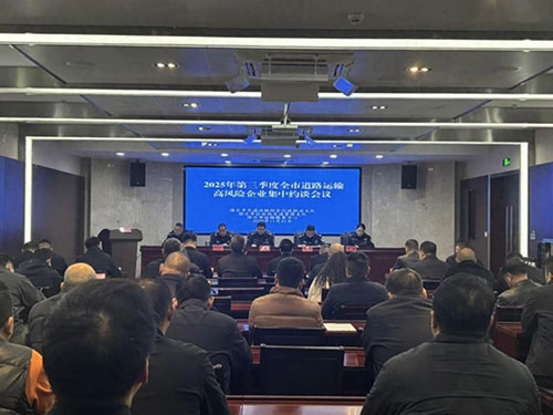 11月21日下午,宿迁市交通运输综合行政执法支队联合市公安局交通管理支队、市运输服务中心,对三季度全市33家道路客货运输高风险企业负责人进行集中约谈,组织观看交通安全警示教育片,通报企业违法违规情况,要求企业严格落实安全生产主体责任,防范重特大道路交通事故的发生。部分高风险企业负责人代表就如何做好通报问题的整改现场作表态发言。