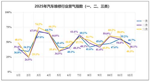 图3 2025年汽车维修行业景气指数(一、二、三类)