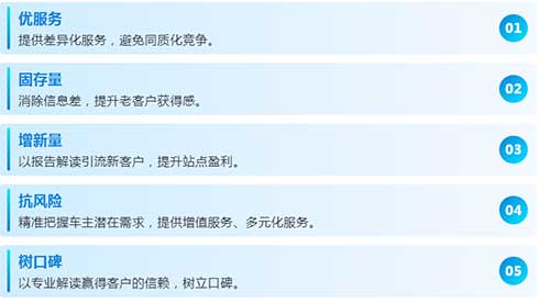 当前机动车检测行业同质化竞争严重,服务趋同,站端由于缺少人力,难以为客户提供专业的报告解读,报告中数据的价值被浪费。在AI智能车况报告的加持下,车主能够对检测报告有更全面、清晰的理解,同时也对车况有了更具体的掌握,此时检测已不再只是法定的车辆合规检查,同时也是一次颇具实用价值的车辆健康咨询。这种服务体验的显著升级,有助于提高客户对站点的信任度,增强差异化竞争力,帮助站点在市场竞争中抵御风险、提高盈利。