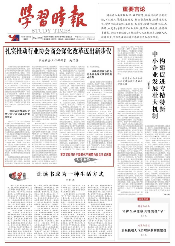 行业协会商会是实现有效市场和有为政府更好结合的桥梁纽带,是推进中国式现代化的重要力量,是党的社会工作的重要对象。党的二十大和二十届历次全会对行业协会商会党的建设和改革发展作出一系列重要部署。近期,中共中央办公厅、国务院办公厅印发《关于推动行业协会商会深化改革的意见》(以下简称《意见》),集中体现了以习近平同志为核心的党中央对行业协会商会的高度重视和殷切期待,为新时代新征程行业协会商会规范健康发展提供了顶层设计和行动指南。我们要坚持以习近平新时代中国特色社会主义思想为指导,全面准确把握推动行业协会商会深化改革的重要意义、重点任务和工作要求,坚决抓好《意见》贯彻落实,不断开创行业协会商会改革发展新局面。