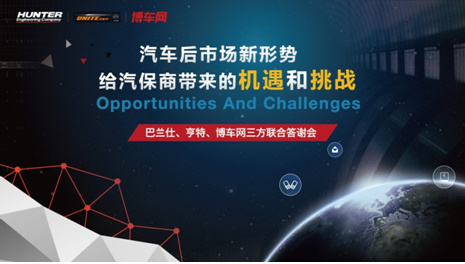 2015年4月10日,博车网、HUNTER(亨特)、巴兰仕三方联合答谢晚宴在北京拉菲特城堡酒店隆重举行,近300名来宾共聚一堂,探讨分享了在汽车后市场新形势下给汽保商带来的机遇和挑战。作为主办方,博车网、亨特、巴兰仕分别结合各自的行业体会做了精彩的主题演讲。