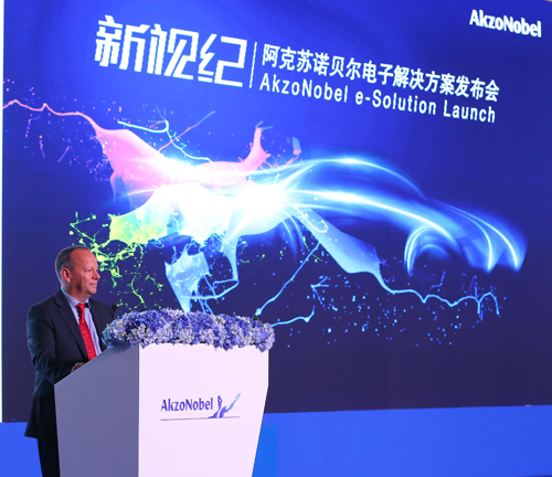 阿克苏诺贝尔汽车修补漆战略市场业务集团董事总经理Simon Parker在电子解决方案发布会上致欢迎辞