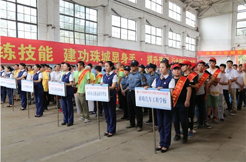 6月27日,2017年“建功珠城”蚌埠市汽车维修行业劳动和技能竞赛在蚌埠市汽车工程学校圆满结束。此次竞赛由蚌埠市人民政府主办,市劳动竞赛委员会、市交通运输局、市总工会、市人力资源和社会保障局联合承办,市运管处、市汽车服务行业协会、市汽车工程学校联合协办。市总工会副主席翟国明、市交通运输局副局长刘振武、孙本龙、市交通运输局工会主席刘军、市运管处处长谢国云、副处长解松涛等参加了竞赛活动并出席了开幕式和闭幕式。